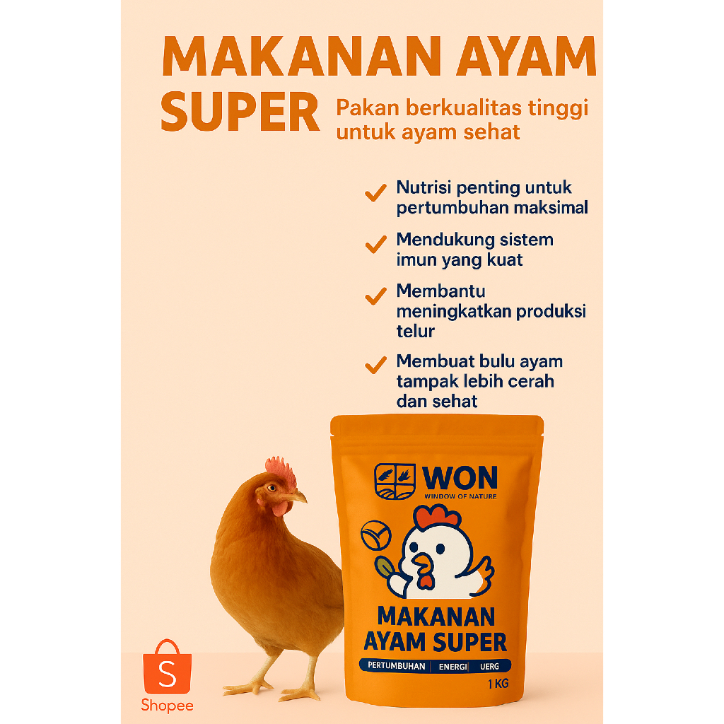 WON Feed Pakan Ayam Premium Petelur Omega | 1kg / 3kg / 6kg -Pertumbuhan Cepat & Hemat Pakan