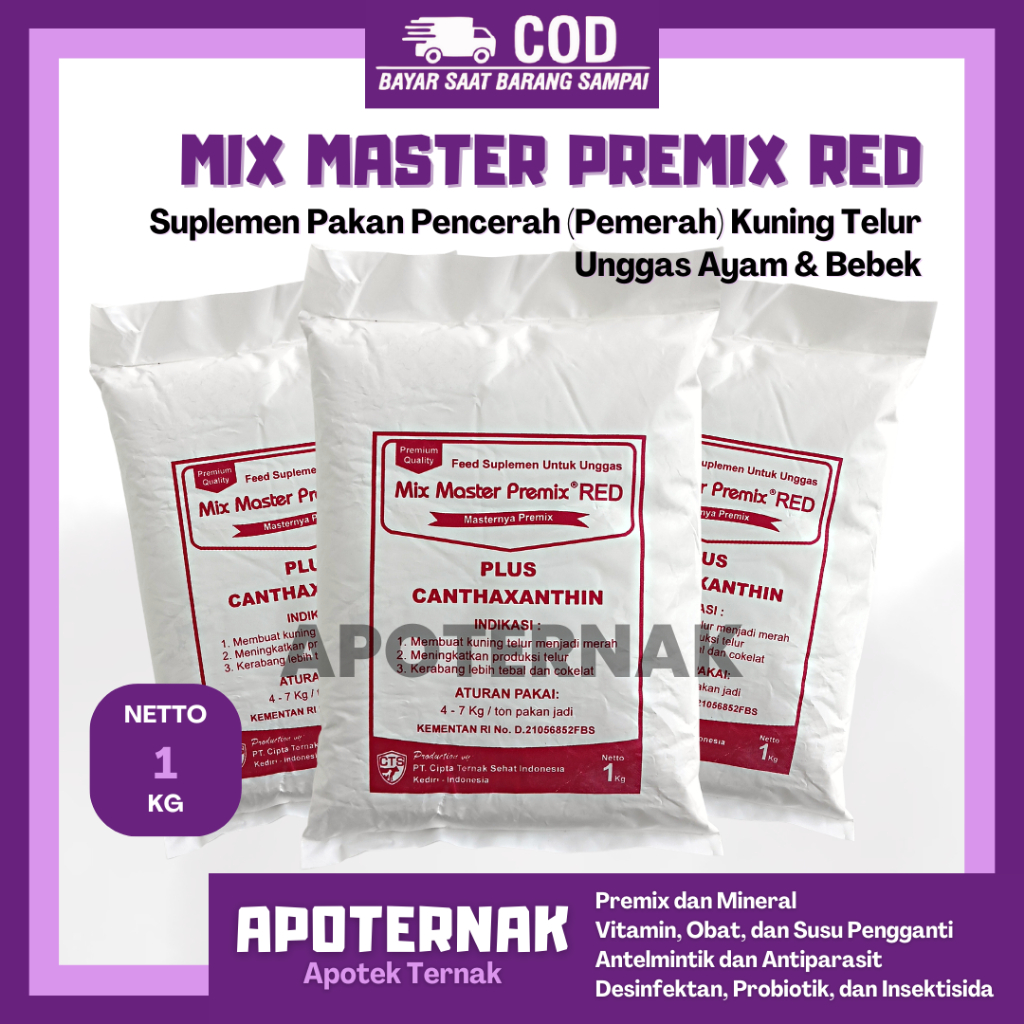 MIX MASTER PREMIX RED 1 kg - Pemerah Kuning Telur Pencerah Warna Kuning Telur Pada Unggas