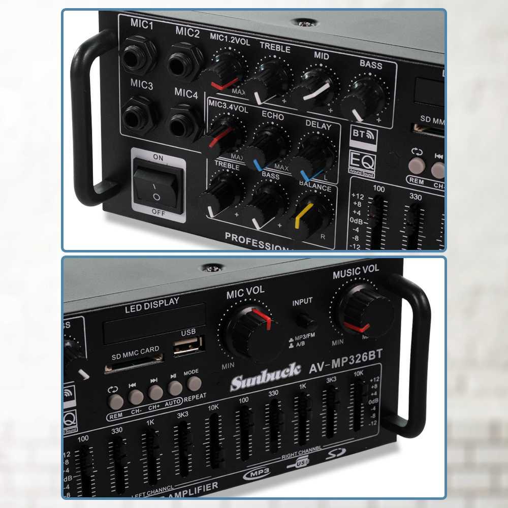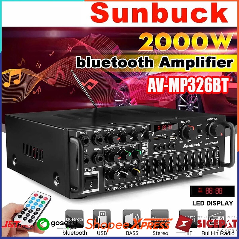 AMPLIFIER BLUETOOTH SUBWOOFER AUDIO EQ KARAOKE MIXER AUDIO FM HOMETHEATER SUNBUCK AV-MP326BT