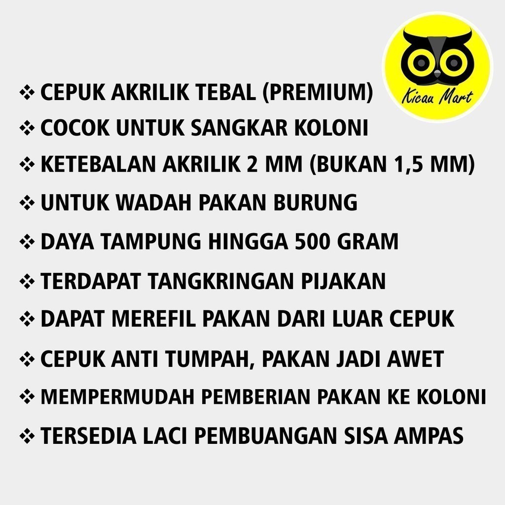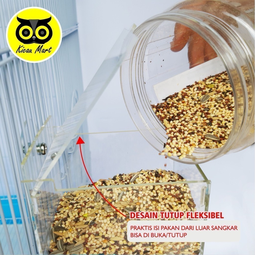 KICAU MART DISPENSER SOLITER WADAH PAKAN BURUNG LOVEBIRD AKRILIK PREMIUM SEMPATI TEMPAT MAKAN LOVE BIRD MKTP1