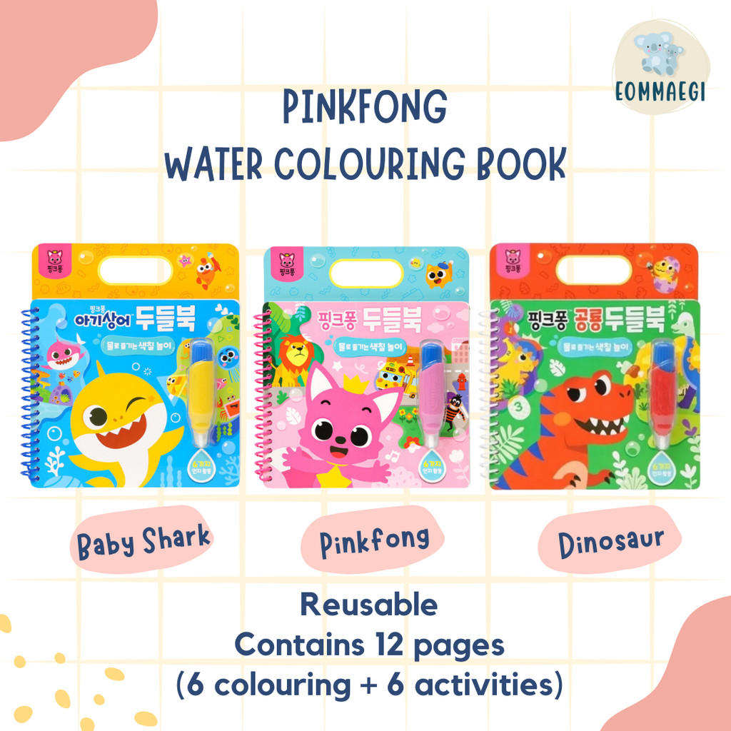 Pinkfong / Baby Shark / Dino Reusable Water Coloring Book / Buku Mewarnai