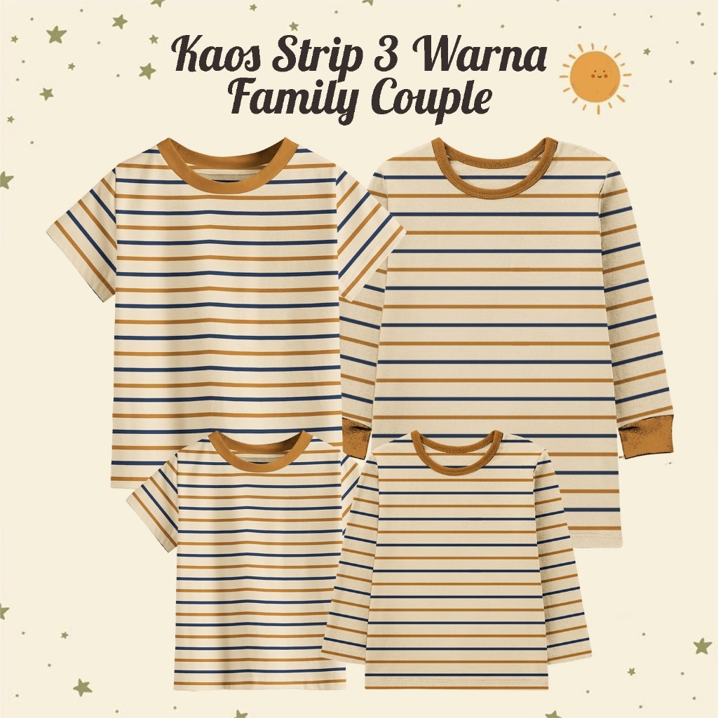 Atasan Kaos Couple Keluarga Strip 3 Warna CreamLengan Panjang Lengan Pendek Anak Dewasa