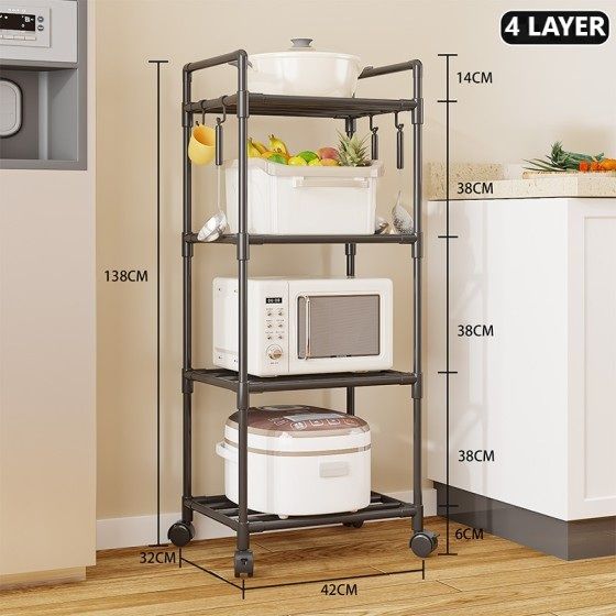 Rak Susun Serbaguna Rak Dapur Tingkat dengan Roda Portable Rak Penyimpanan Alat-alat Dapur Multifungsi