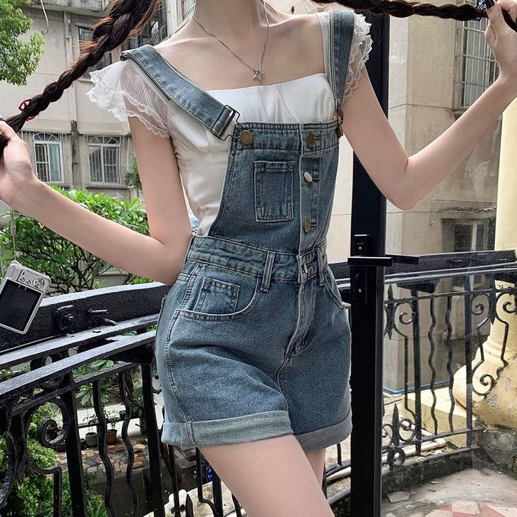 Celana Pendek Dungaree Wanita Gaya Vintage