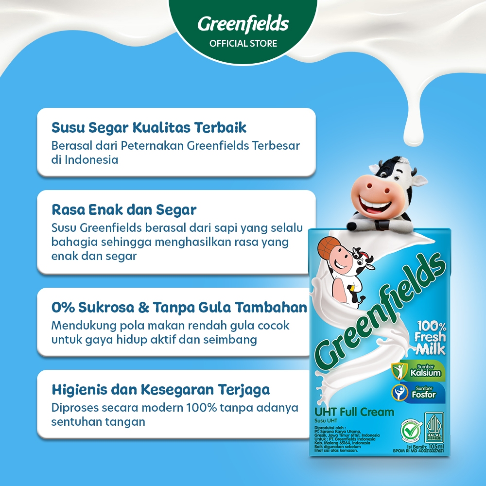 [LEBIH HEMAT] Susu Greenfields UHT Full Cream 105 mL x 1 Karton