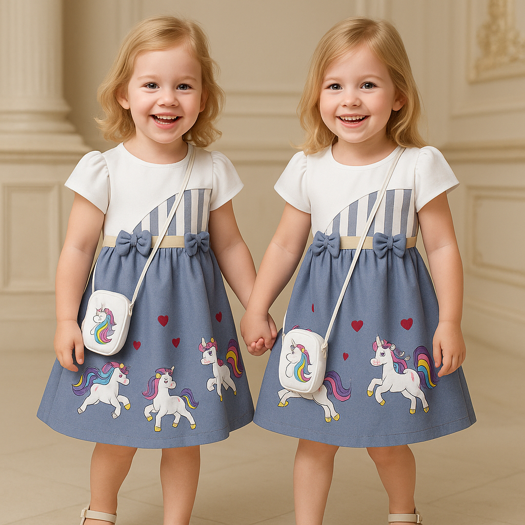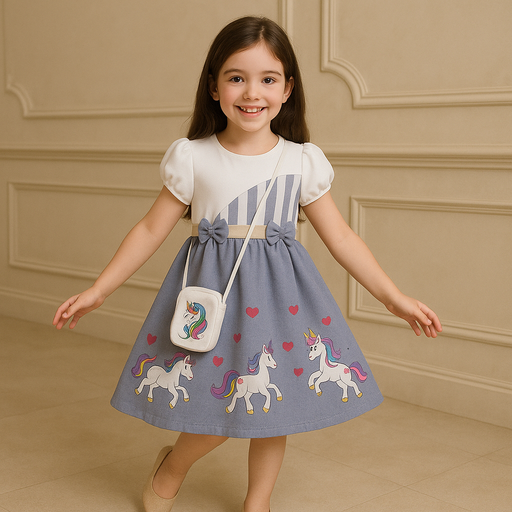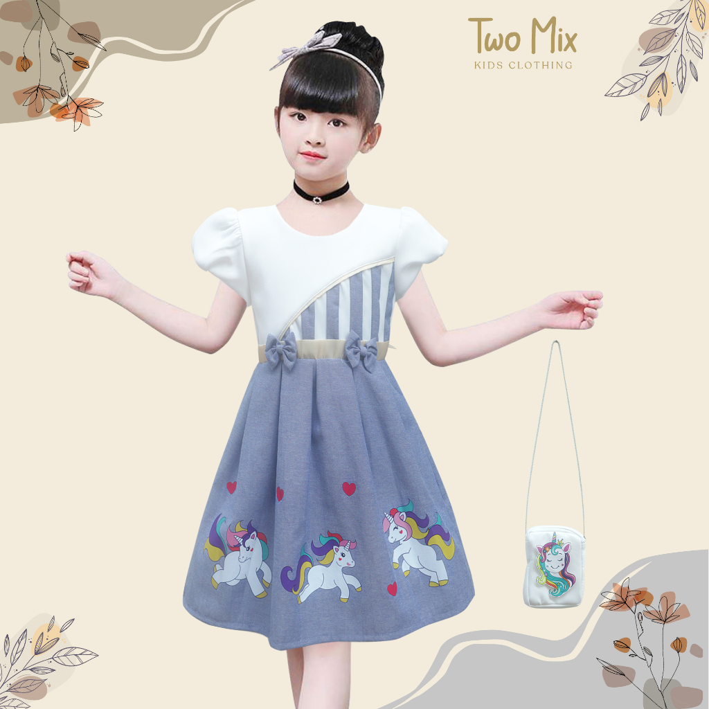TWO MIX - BAJU DRESS ANAK PEREMPUAN UNICORN + TAS CANTIK STYLISH USIA 3-12 TAHUN 4252