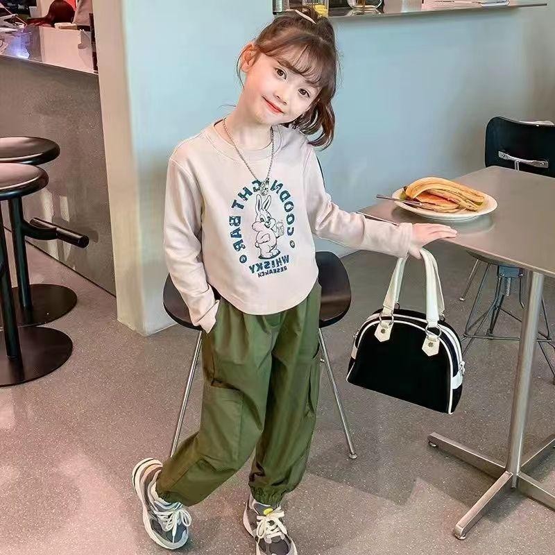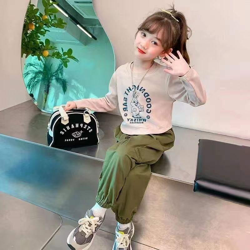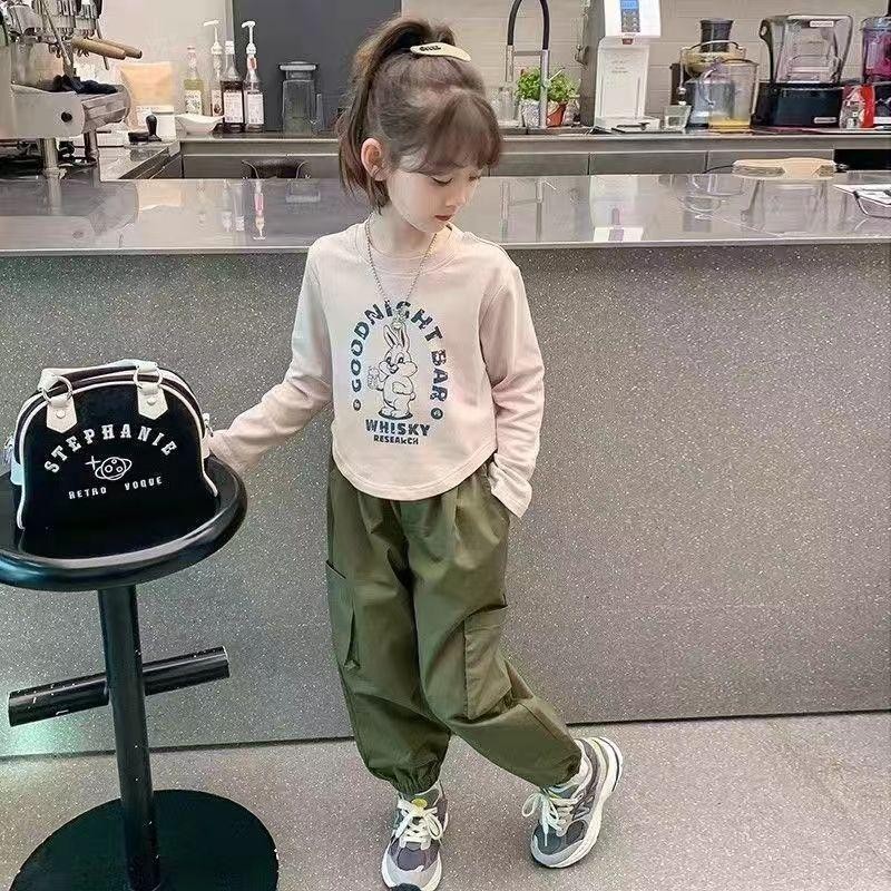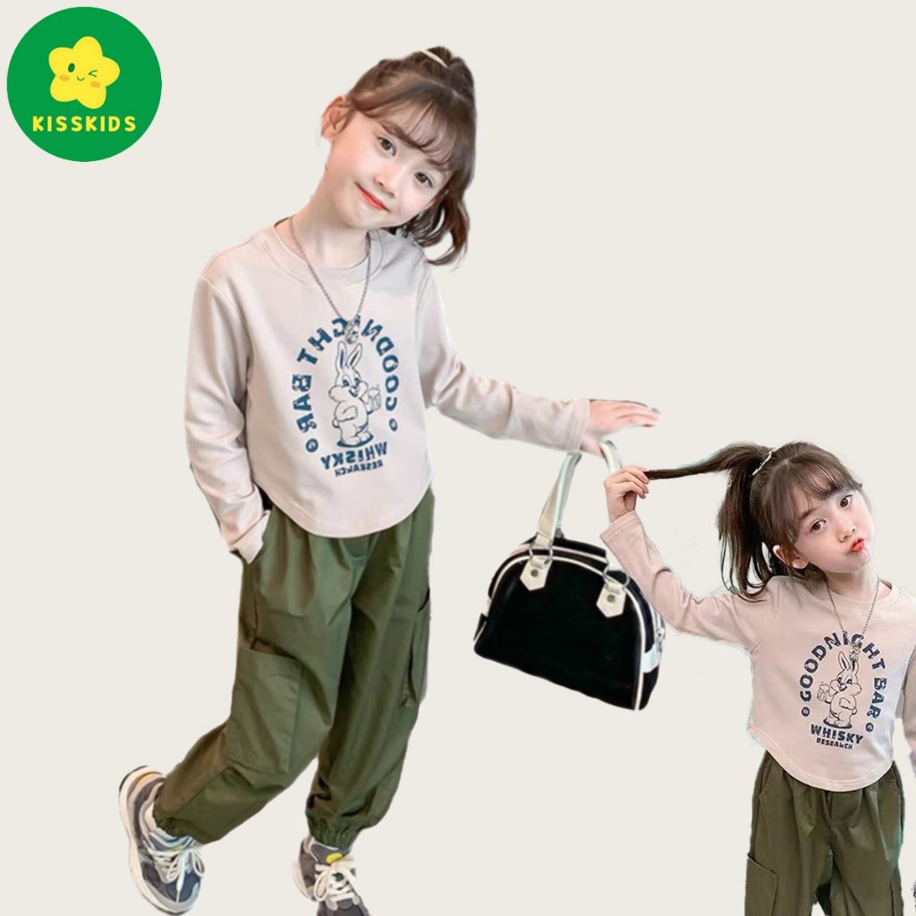 KISSKIDS KOREAN STYLE SETELAN ANAK PEREMPUAN SETELAN CARGO T-SHIRT LENGAN PANJANG+CELANA CASUAL OOTD KOREAN STYLE ANAK