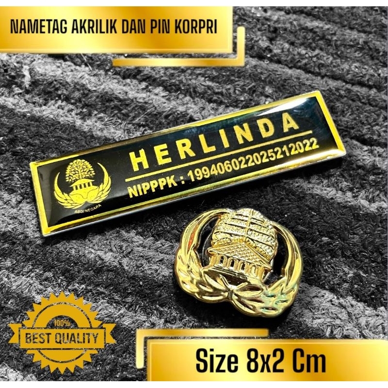 Name tag asn pns akrilik satu set sama pin korpri bahan logam
