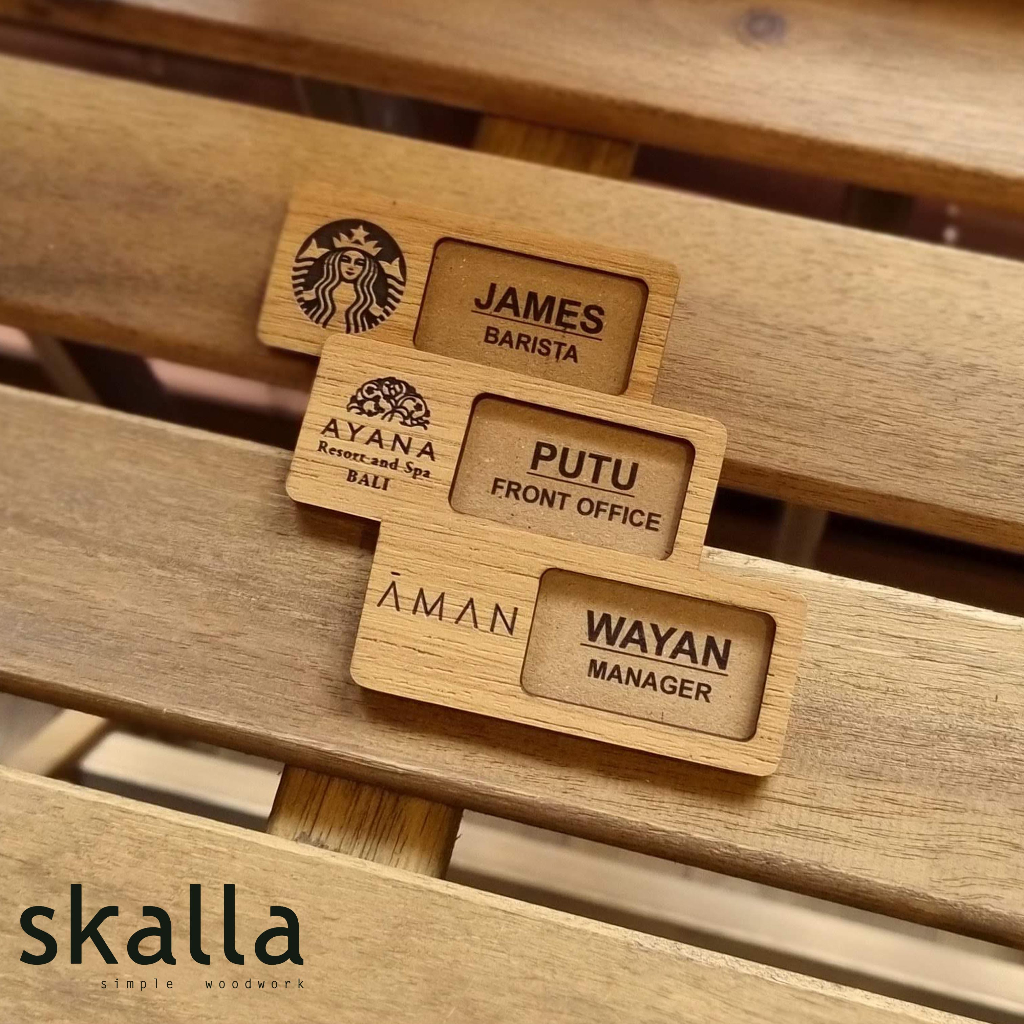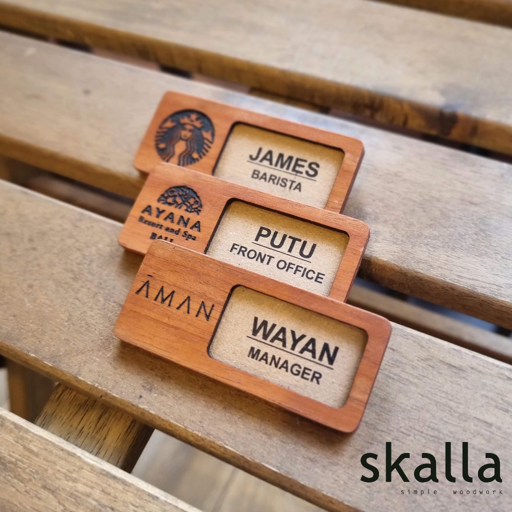 Name Tag Reusable Kayu Badge Papan Nama Dada Wooden Nametag Custom Dapat Diganti 2