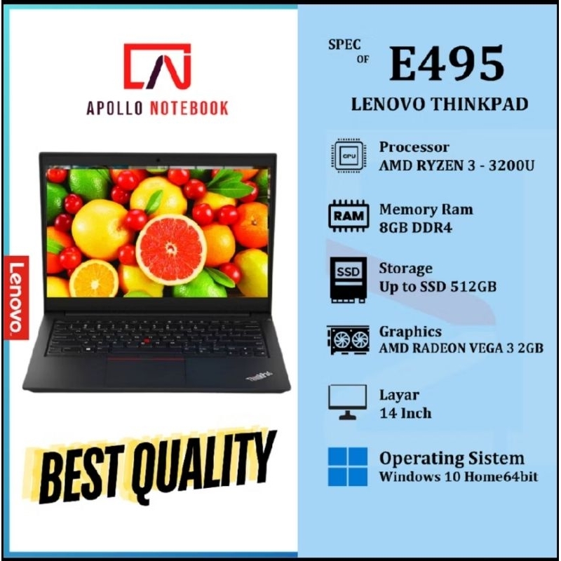 LAPTOP GAMING LENOVO THINKPAD E495 RYZEN 3/8GB/SSD 512GB - ELEGANT MULTITASKING & BERGARANSI
