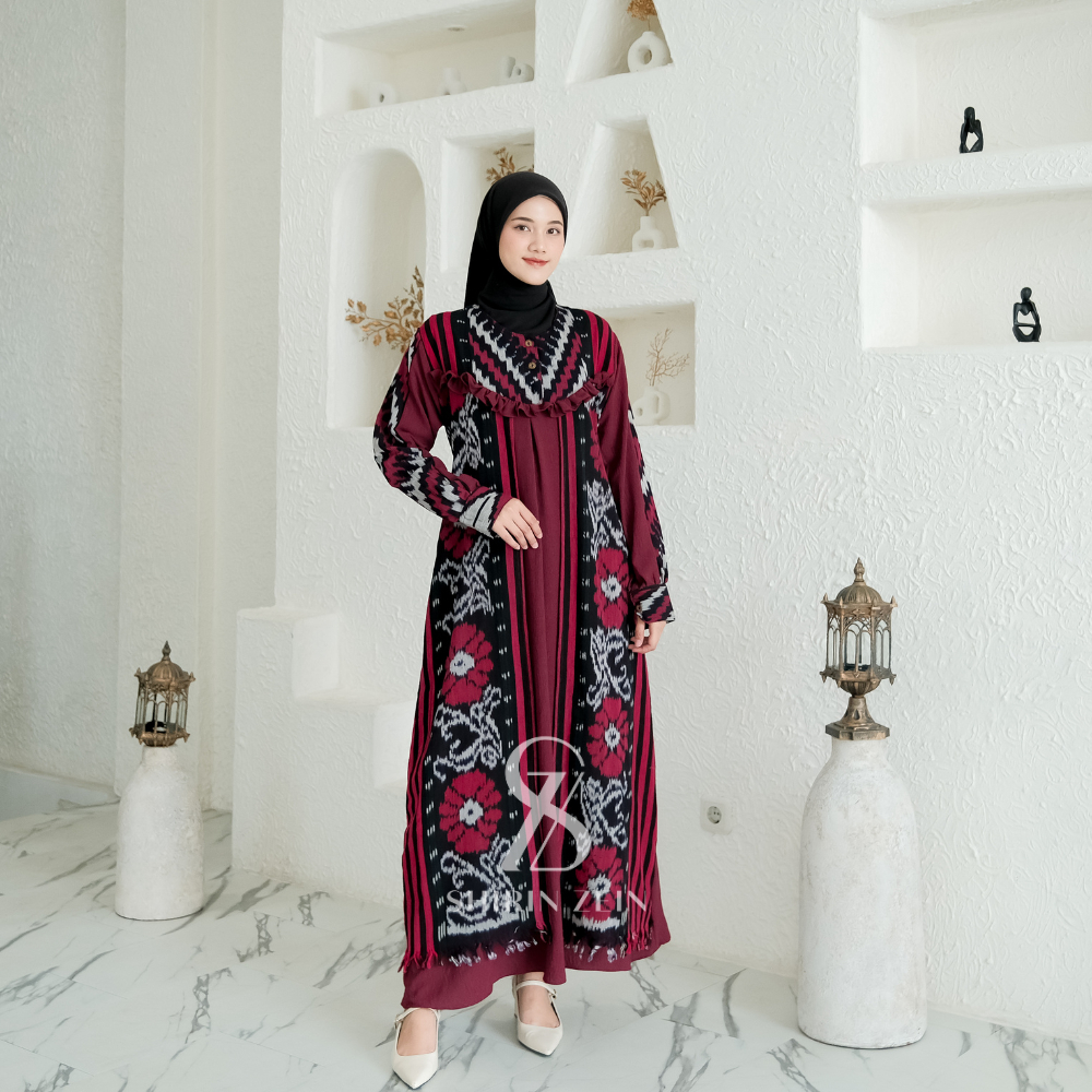 SHIRIN ZEIN - GAMIS TENUN ETNIK PESTA MEWAH JUMBO LD 95 - LD 120 MODEL TERBARU 2025 DRESS RAHAYU