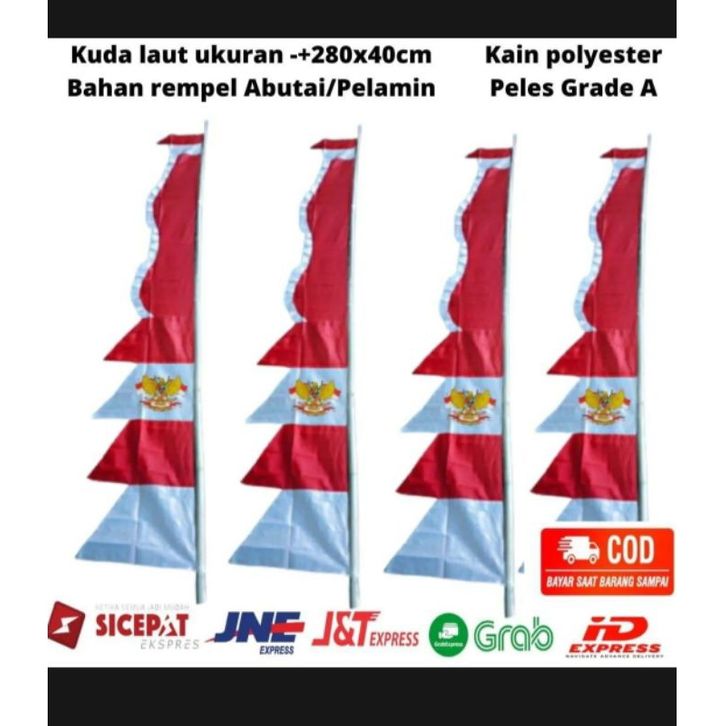 1PIS BENDERA UMBUL UMBUL GARUDA MOTIP KUDA LAUT/YOPIS MERAH PUTIH BAHAN PELES DAN ABUTAI