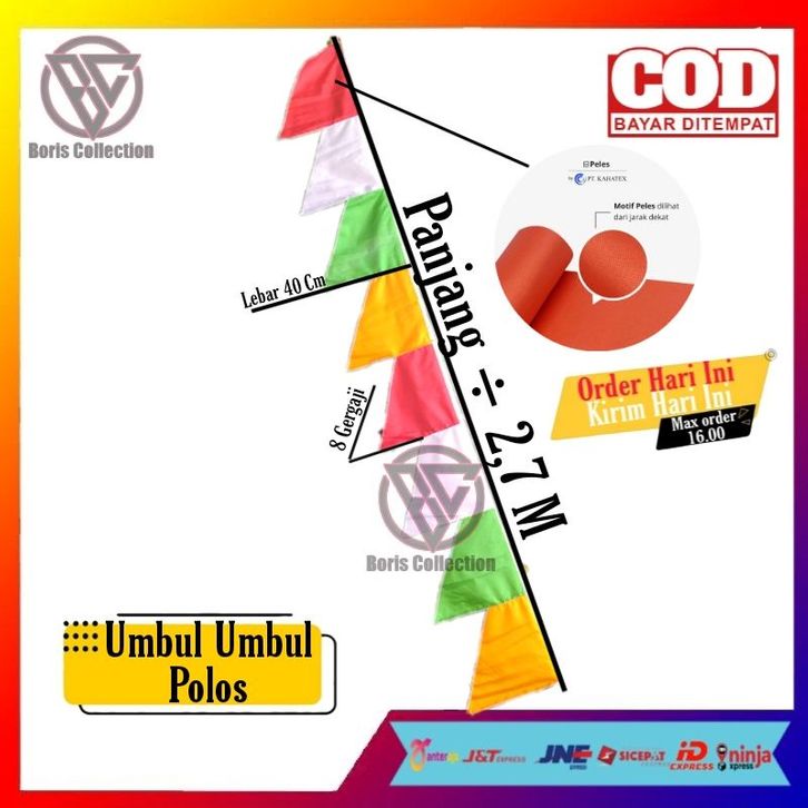 Bendera Umbul umbul warna warni polos size 2,7 meter