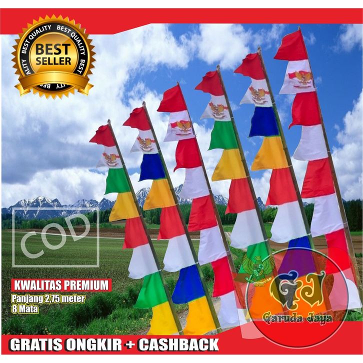 Bendera 55x80cm, Umbul umbul polos, biru, hijau, merah putih
