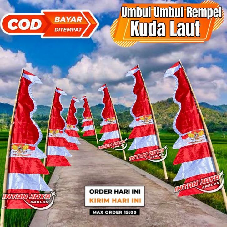 Bendera Umbul Umbul Kuda Laut Merah Putih dan warna warni isi 20 pcs