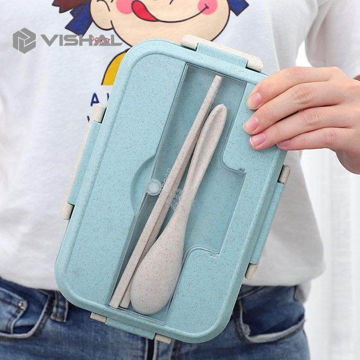 EKSKLUSIF VISHAL Lunch Box Kotak Bekal Makan Jerami Gandum kotak makan 1000ml 4 In 1 Free Sendok Tempat Makan