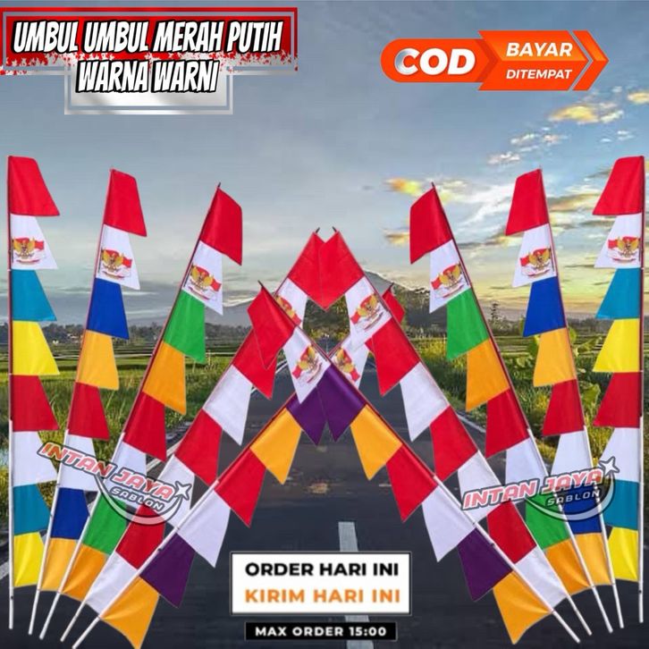 Bendera Umbul-Umbul Gergaji Garuda Merah Putih Dan Warna Warni