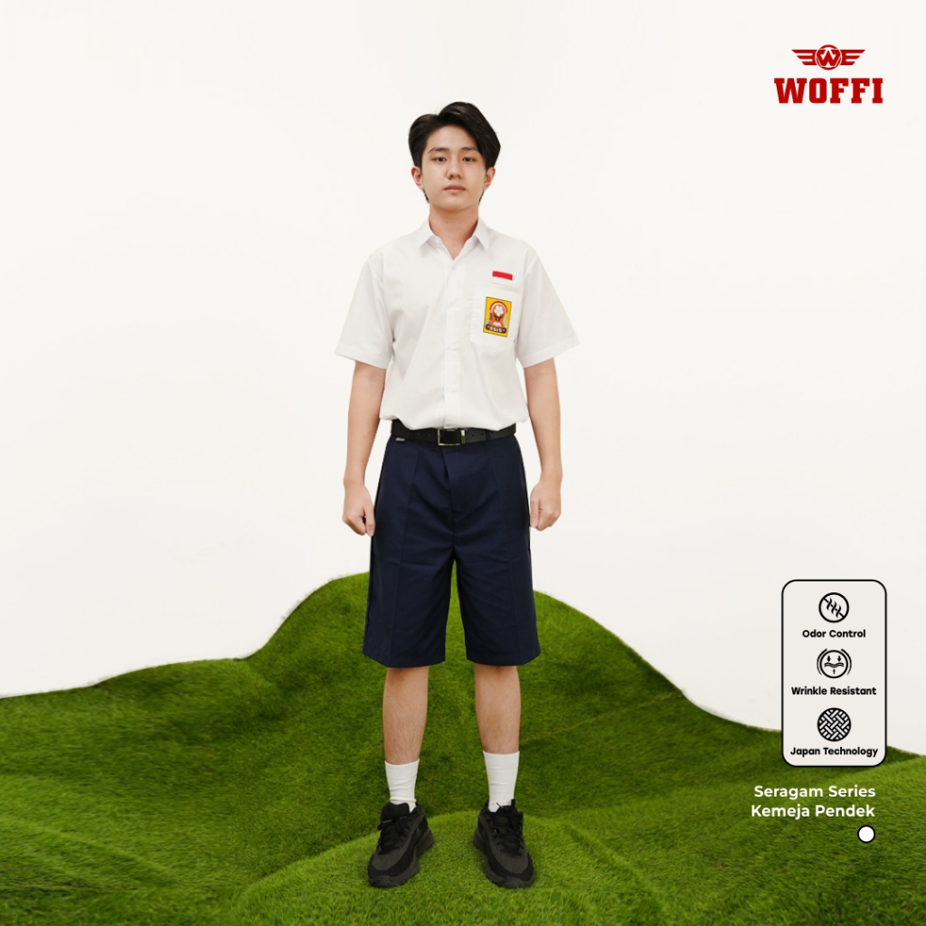 Seragam SMP Woffi Kemeja Badge Special Edition Putih