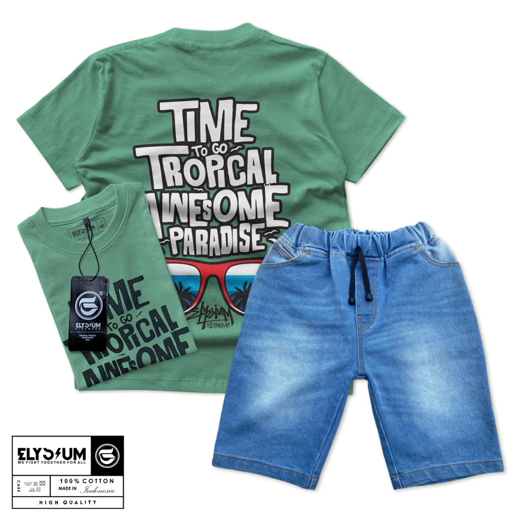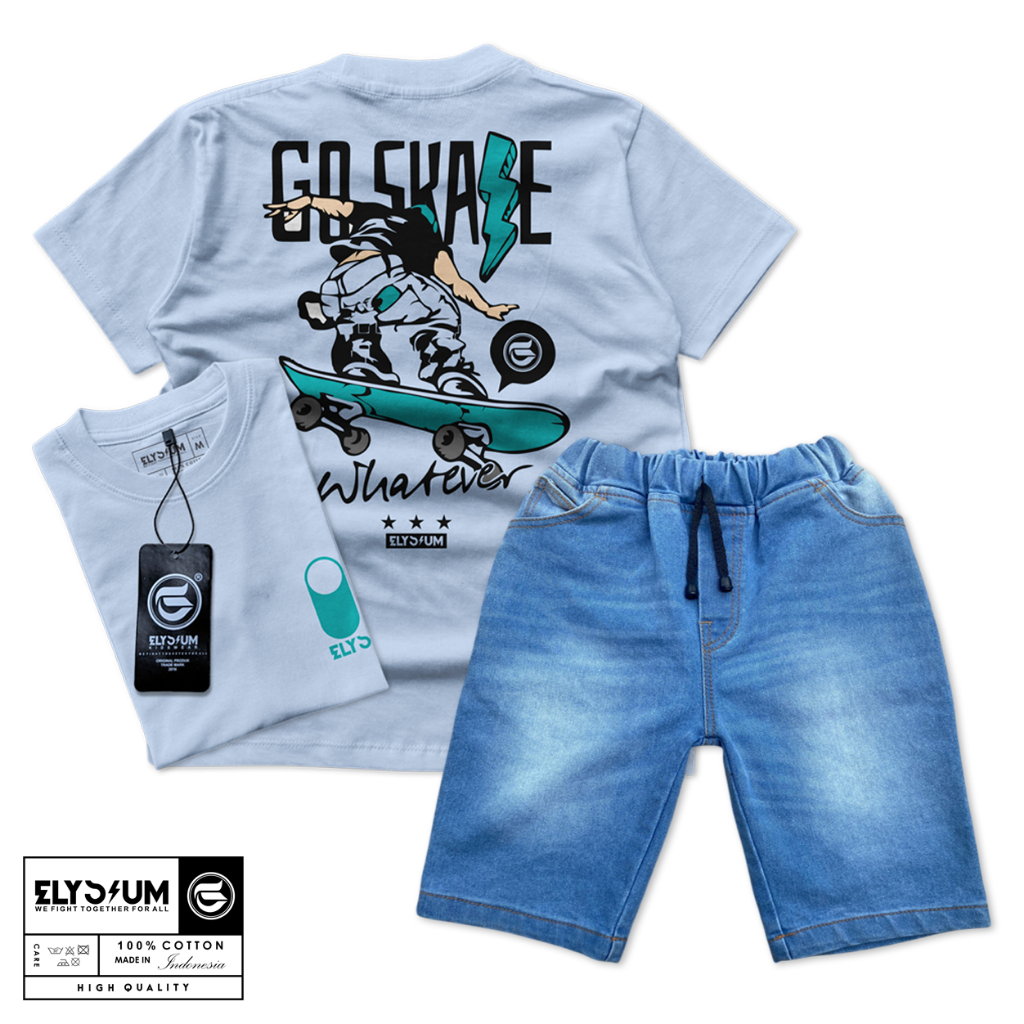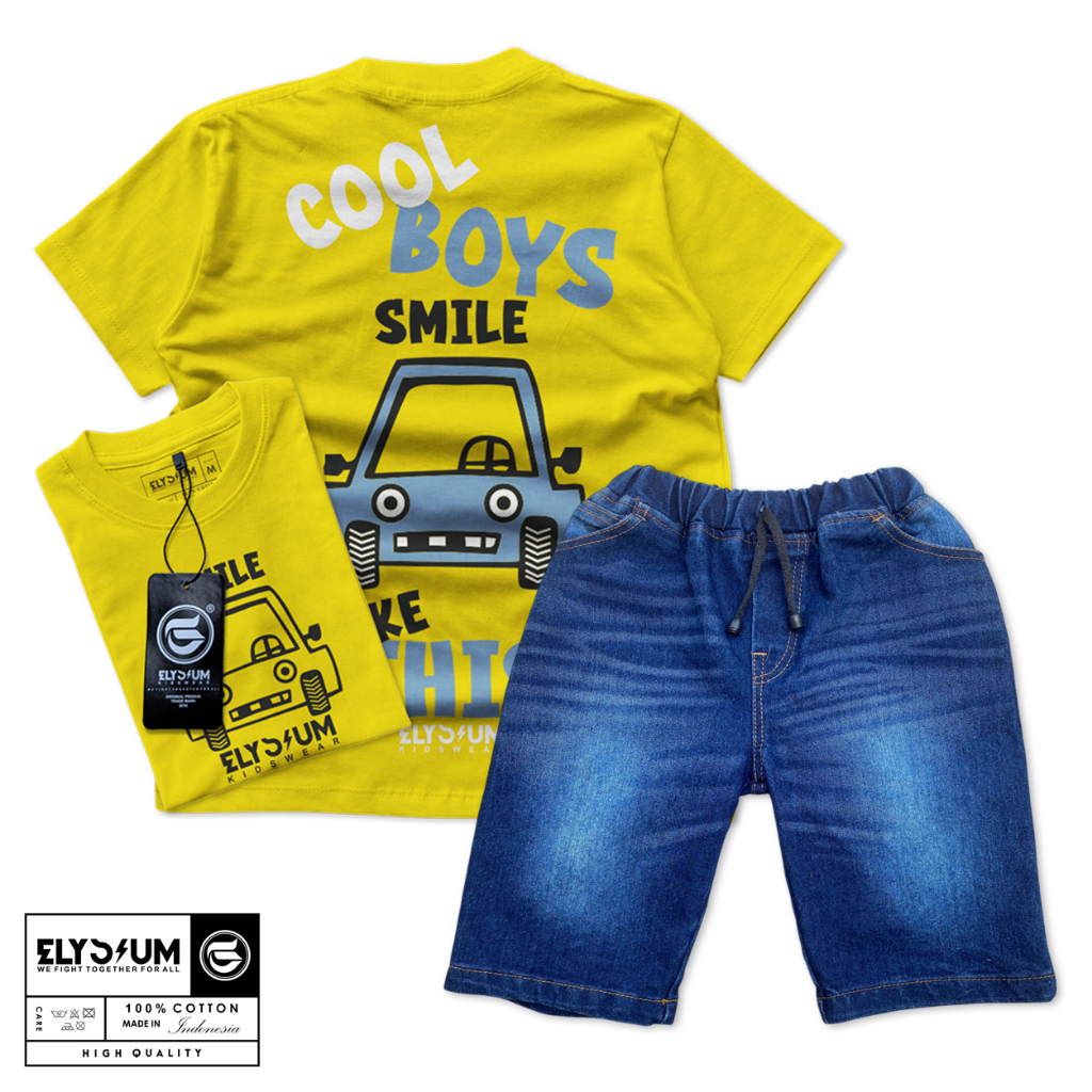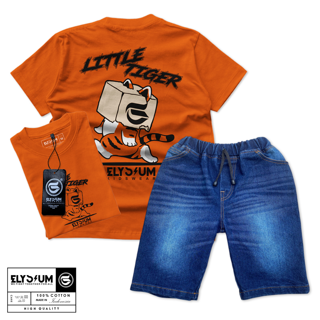 ELYSIUM KIDSWEAR / SETELAN CELANA JEANS ANAK / SETELAN KAOS DISTRO ANAK CELANA JEANS PENDEK