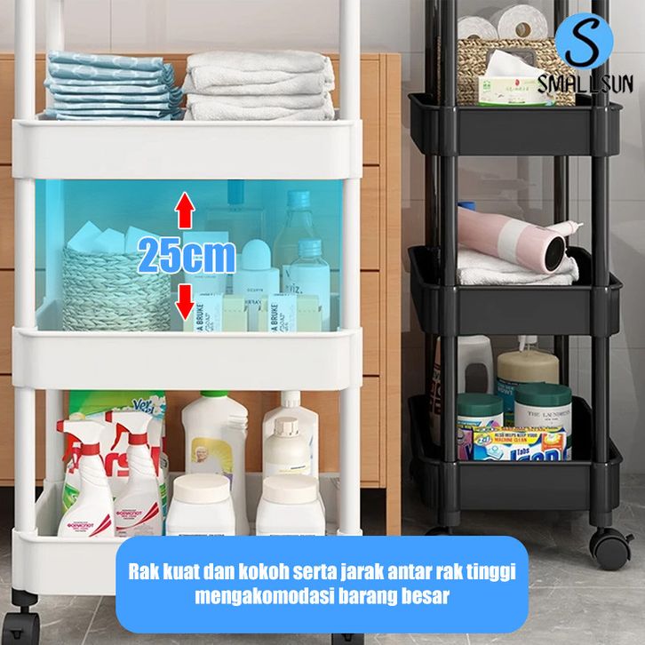 Rak Susun Troli 4 Susun Serbaguna Dengan Roda Pegangan Rak Troly Kamar Mandi Bahan Plastik Rak Susun Multifungsi