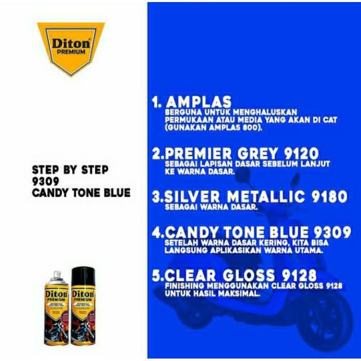 Pilox Diton Premium PAKET Cat Pilok Pilox DITON Premium 9180 Silver Metalik + 9309 Candytone Blue Biru + 9180 Clear Glo