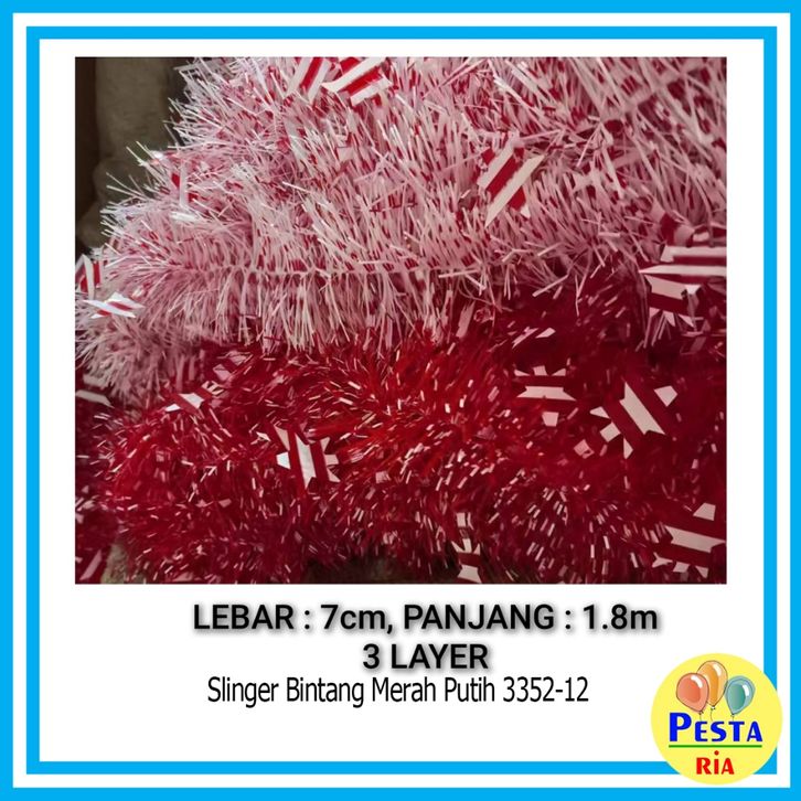 Murah 1Pcs Slinger Bintang Merah Putih lebar 7cm x panjang 1,8m, slinger rumbai, hiasan agustusan,