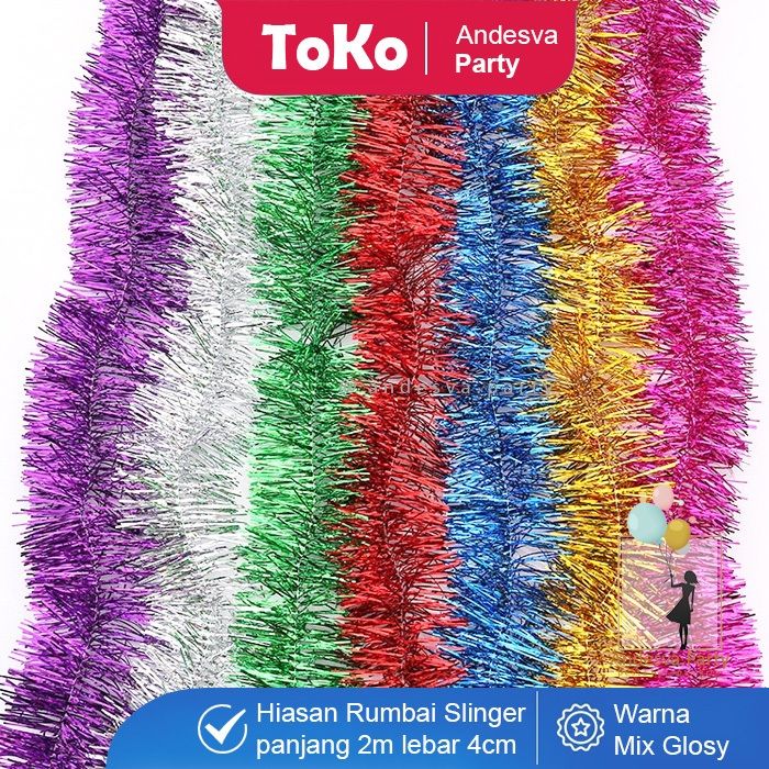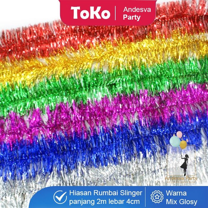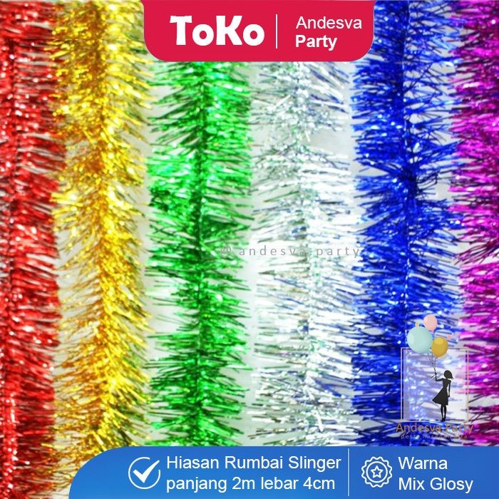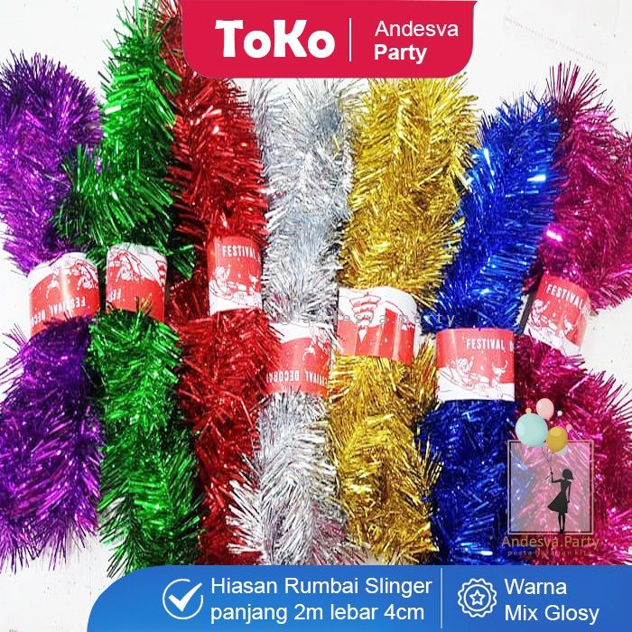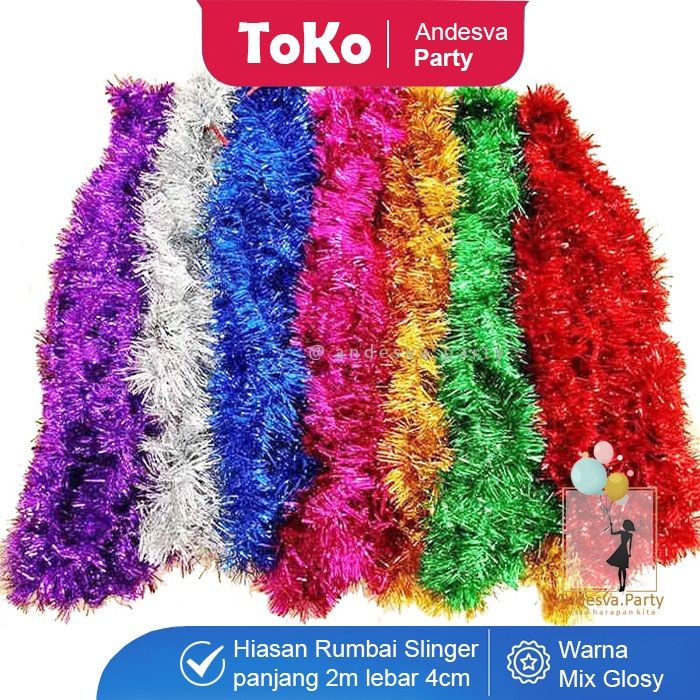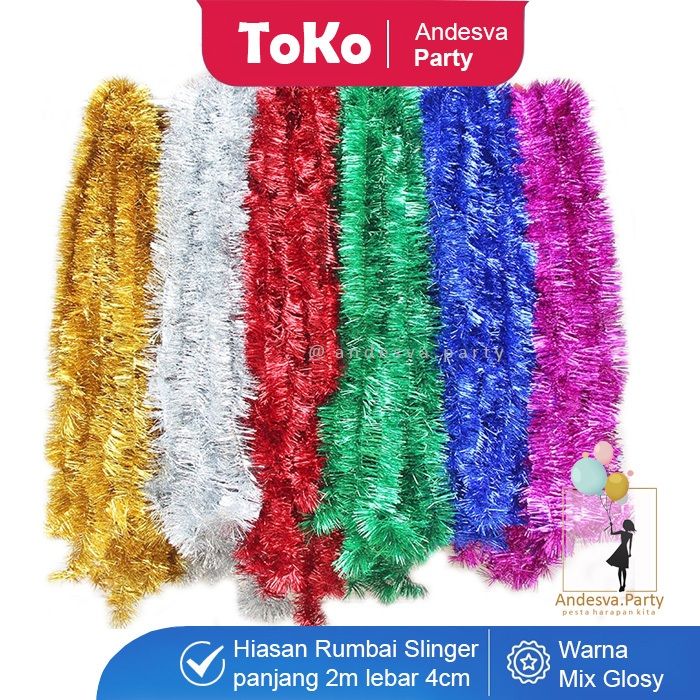 Slinger tinsel hiasan Rumbai / slinger polos warna 2 m / slinger rumbai hiasan kado parcel dekorasi