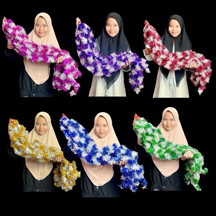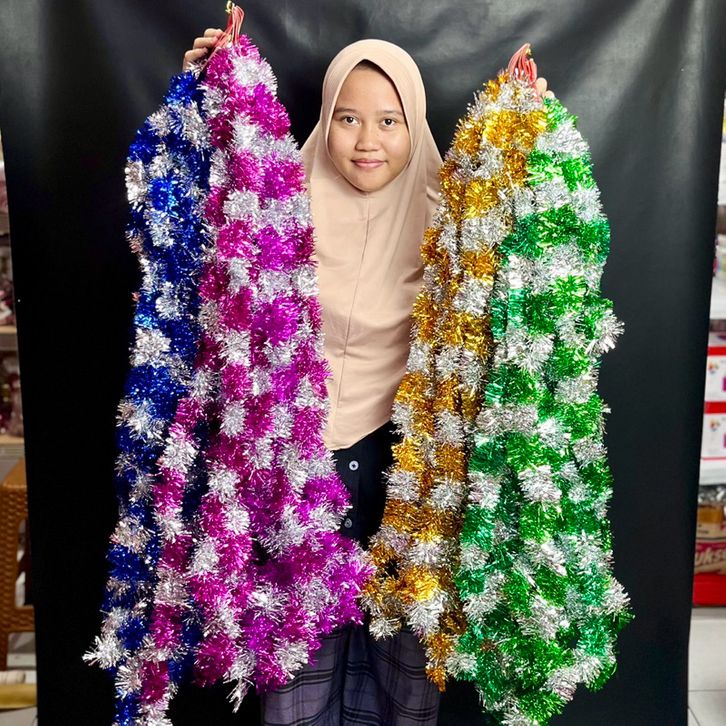 Slinger tinsel Silang gradasi singer rumbai hiasan merah putih / pesta / tahun baru kurnia kado
