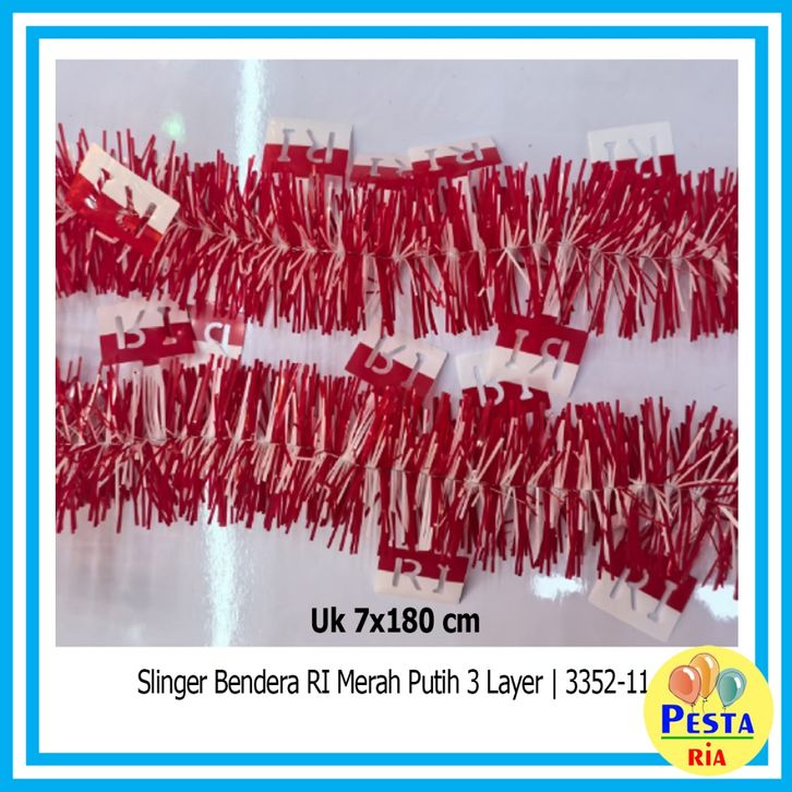 Murah 1Pcs Slinger Merah Putih 3 Layer, slinger dirgahayu, slinger rumbai, hiasan agustusan, slinger