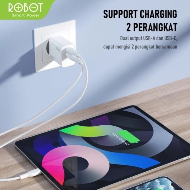 Charger Robot RT F2 fast charging QC 3.0 18w 3A Dual Port USB + TypeC