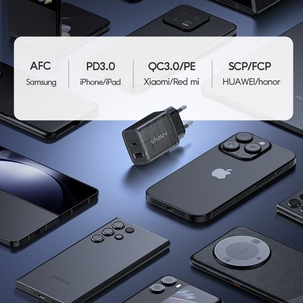 VIVAN Charger Fast Charging Type C USB 30W Dual Output Power 30T