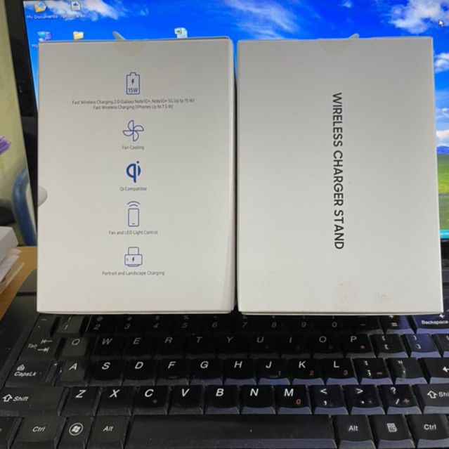 Samsung Wireless Charger Stand With Fan Cooling 15W Fast S20 Note 10 - Putih Hitam
