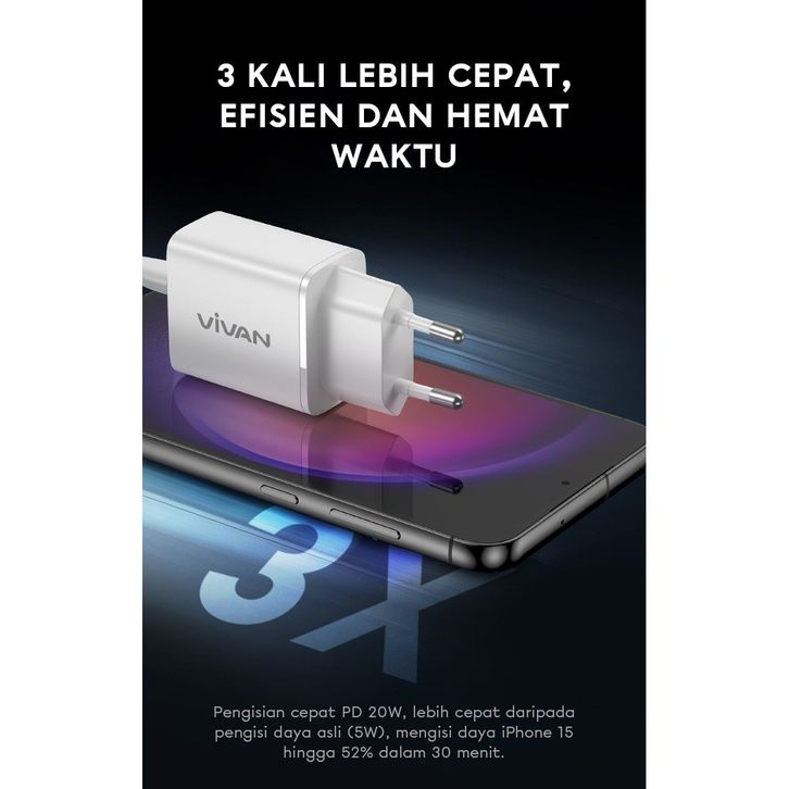 Vivan Power C20C C30C Charger 20W 30W PD with cable USB Type C to Type C Fast Charging