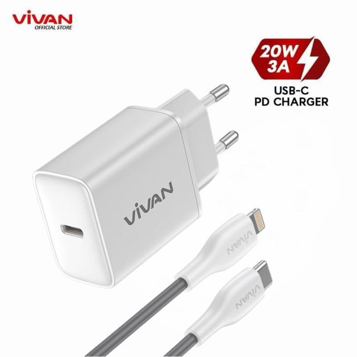 Charger IPHONE Vivan Power C20L 3A 20W Cable TYPE-C TO LIGHTNING Adaptor USB-C ORIGINAL