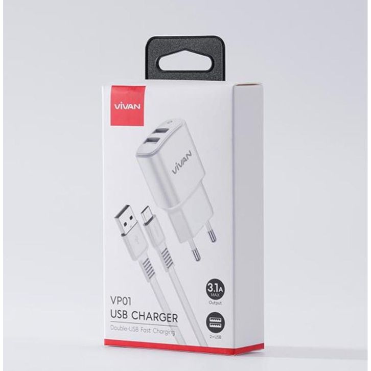 A Vivan Adaptor Charger VP01 Batok Charger Dual USB 3.1A Quick charge