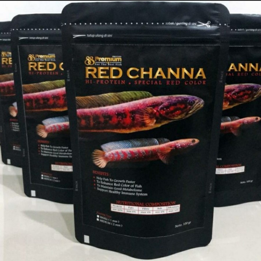 88 Premium RED Channa 1 mm - Pellet Pakan Makanan Ikan Pelet 100 gram