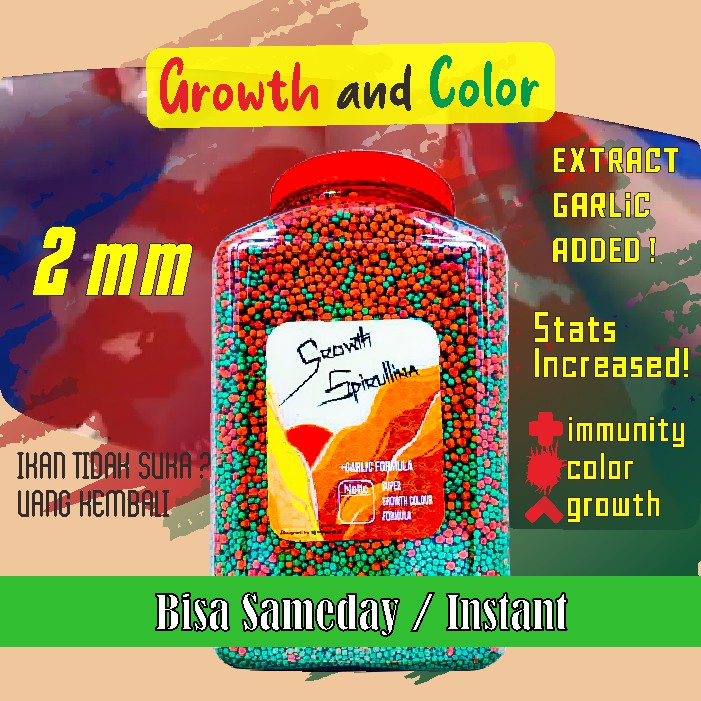 Pakan Pelet Makanan Ikan Koi Growth Spirulina 1,6 KG Ekstrak Bawang Putih Toples IKANESIA