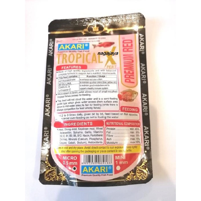 Akari premium red tropical xpert 0.5 mm 40 gr semifloating makanan ikan cupang pelet ikan tropical