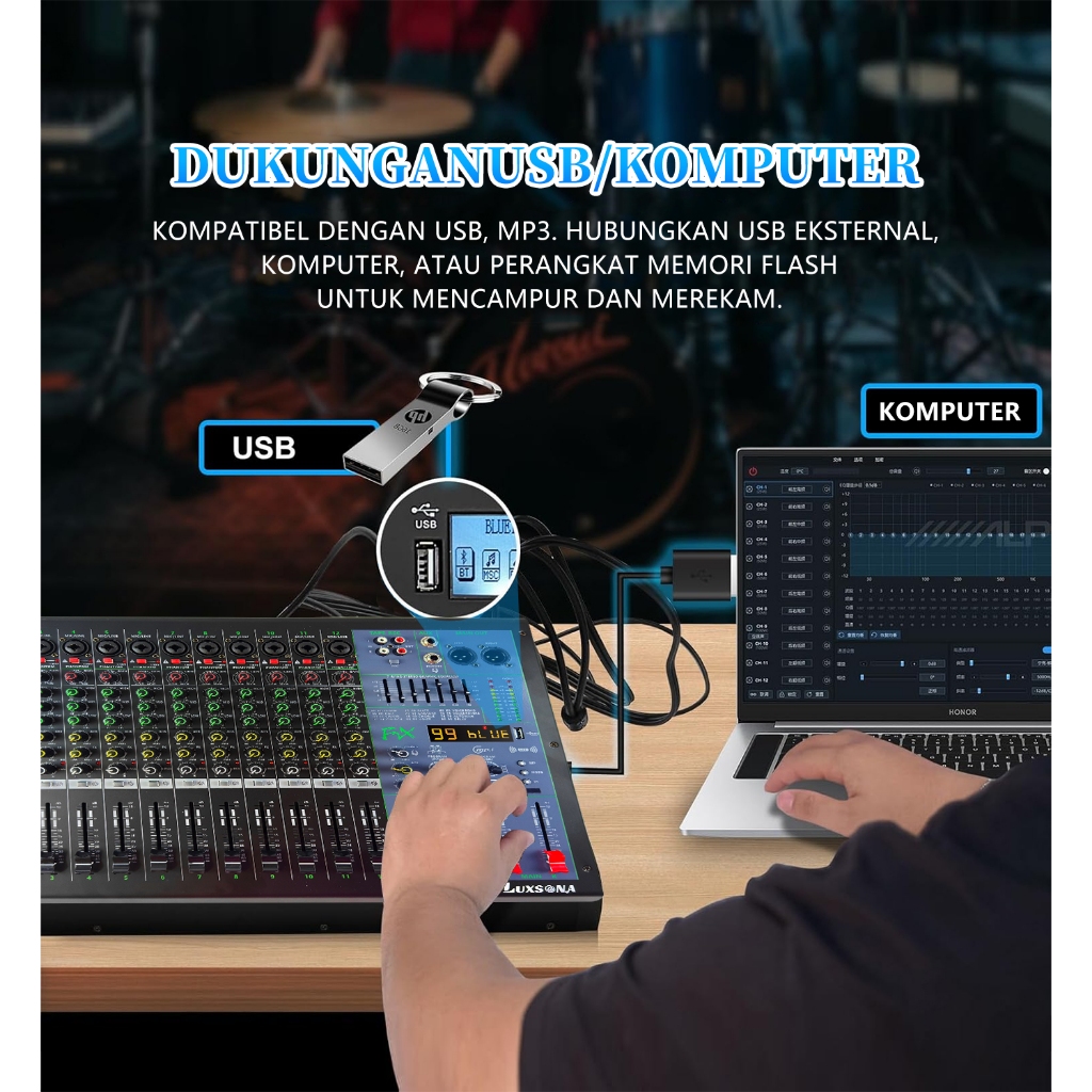 [Mall] Mixer Audio Professional LUXSONA 12 Channel 99DSP built in 7 band EQ USB SD Bluetooth Amplifier