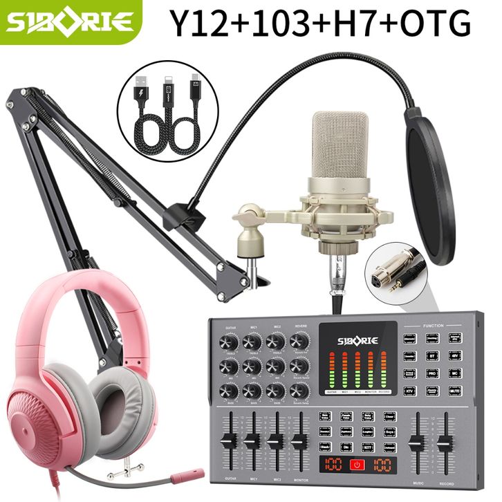 SIBORIE【FREE OTG】Y12 SOUNDCARD +103 MIC + H7 HEADPHONE + OTG-IPHONE/TYPE C KABEL KONVERSI FOR STREAMING LANGSUNG DJ SI