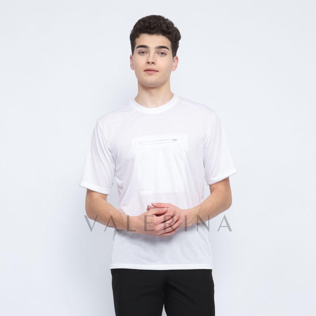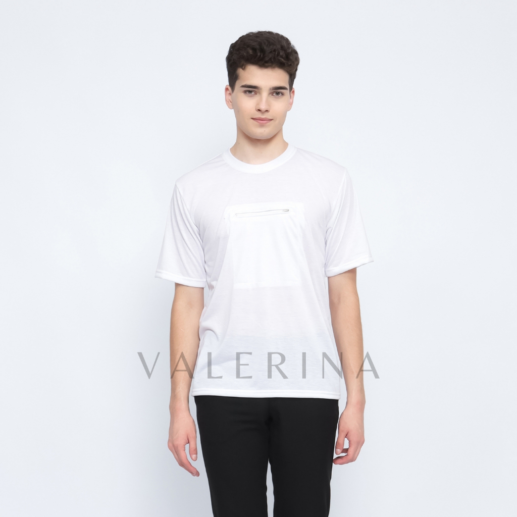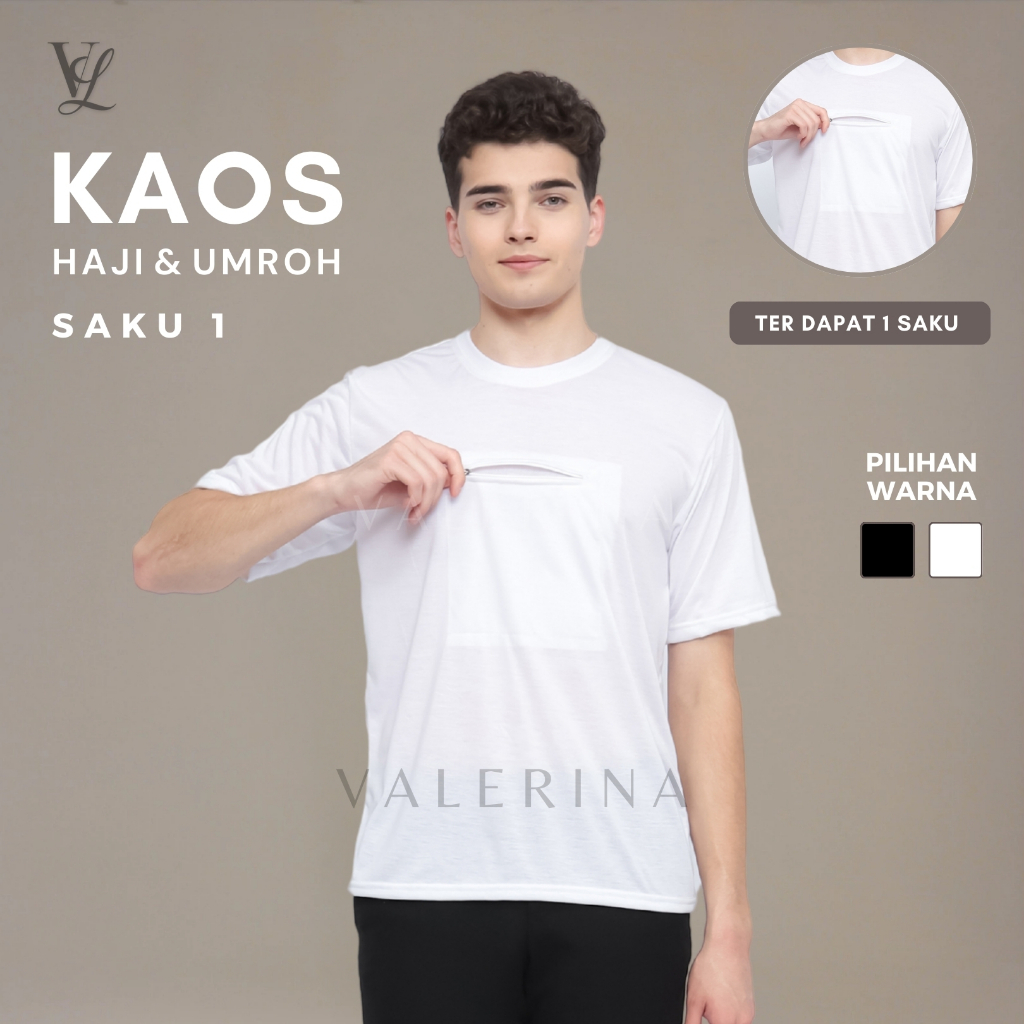 VALERINA - Kaos Haji Umroh Polos Kantong depan Saku 1 Resleting Pria Dewasa Exlusive Bahan Polyester Ultra Soft Warna Pu