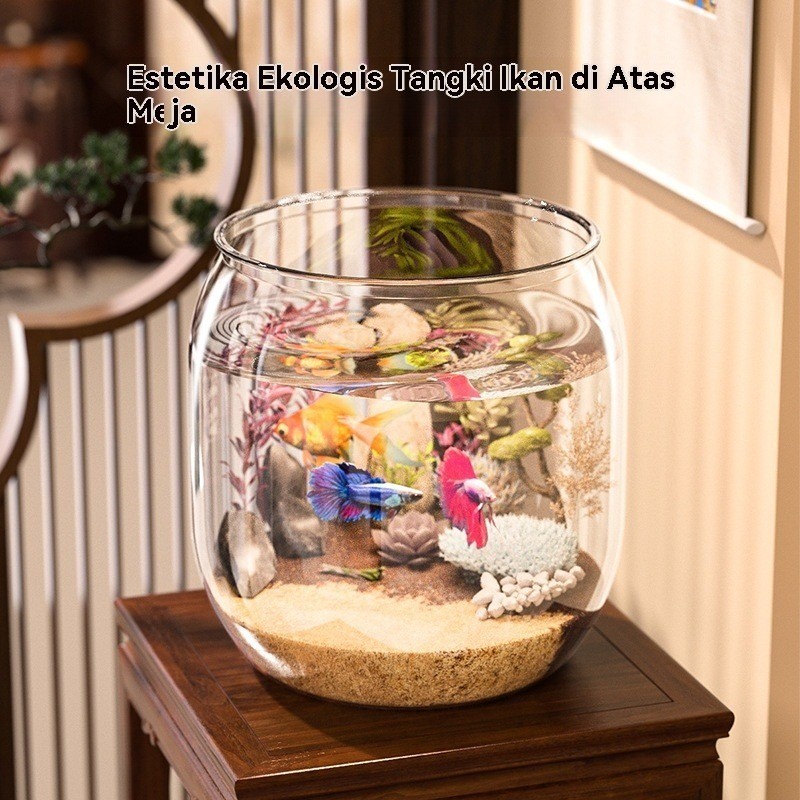 Aquarium Bulat Mini Bulat Aesthetic Aquarium Tank Cupang Mini Vas Aquarium Bulat Ikan Hias Fish Bowl Estetik Plastik