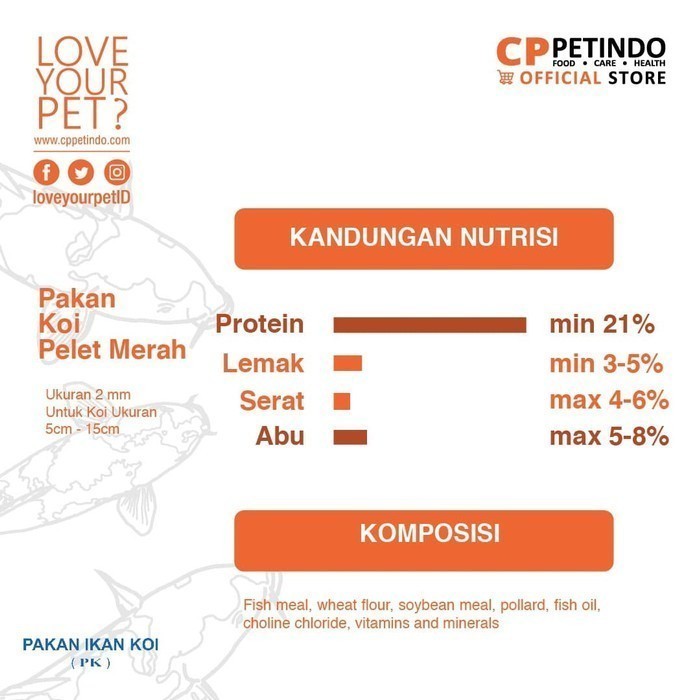 CPPETINDO Pakan Koi (PK) 2mm - Red 10kg Fish Food