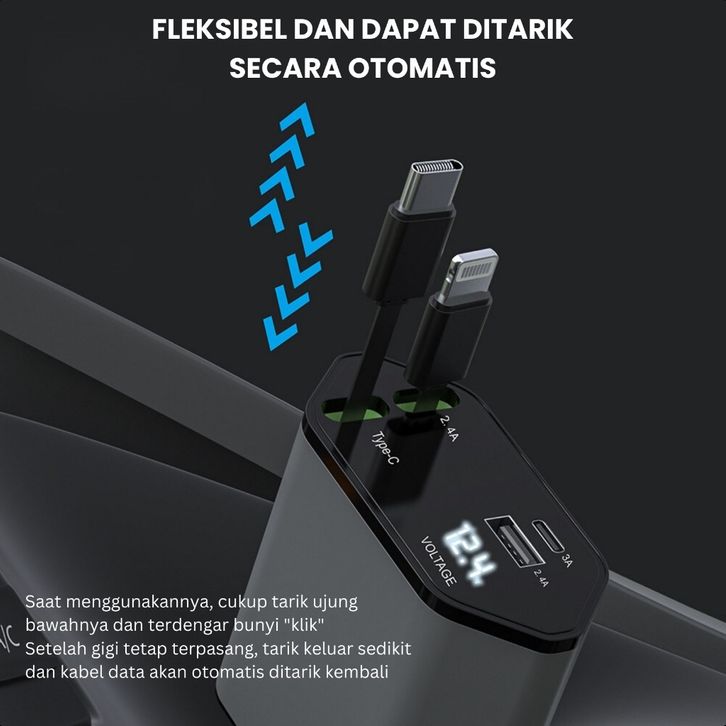 Car Charger Colokan Mobil 4 Ports PD 120W USB Type C & Lightning Fast Charging Qualcomm 3.0
