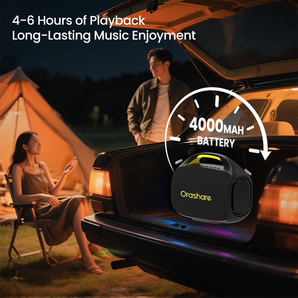 Orashare BS08 MAX 40W TWS Speaker Bluetooth Bass Berat Baterai 4000mAh Dengan Lampu RGB Speaker Bluetooth Tahan Air IPX6