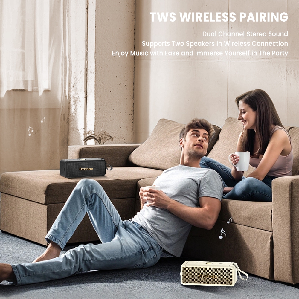 Orashare BS19 Plus 20W Bluetooth Speaker Super Bass True Wireless Stereo Speaker Retro Design BT5.3