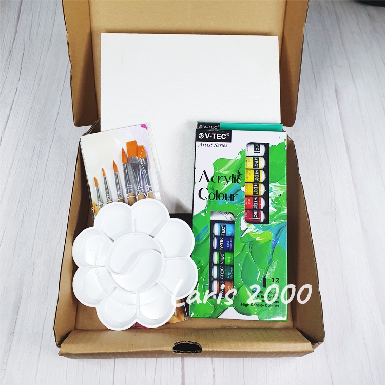 Paket Lukis Cat Akrilik 12 Warna + Box