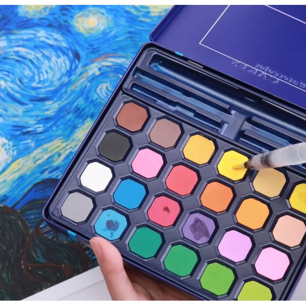 36/48 Watercolor Set Cat Air Set (Bonus Kuas Dan Kertas Gambar) / Cat Air Padat / Solid Watercolor Set / 36 48 Warna Cat