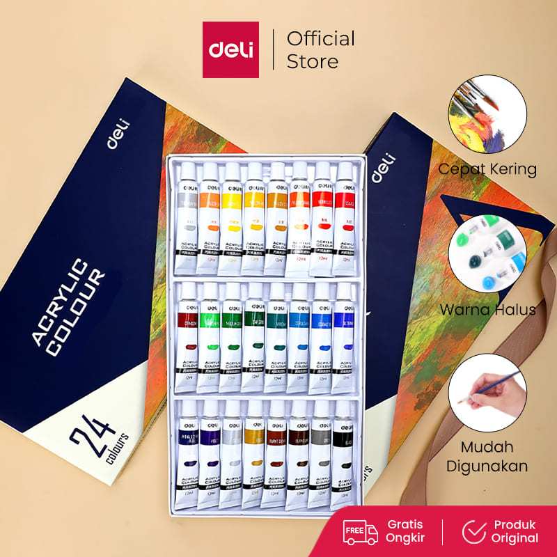 Deli cat akrilik 12/18/24 warna, cepat kering dan halus 73856 7387 73858