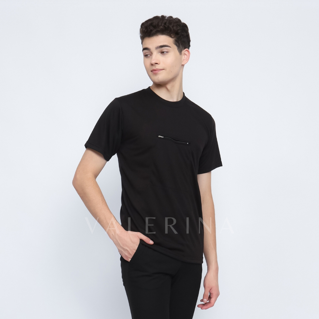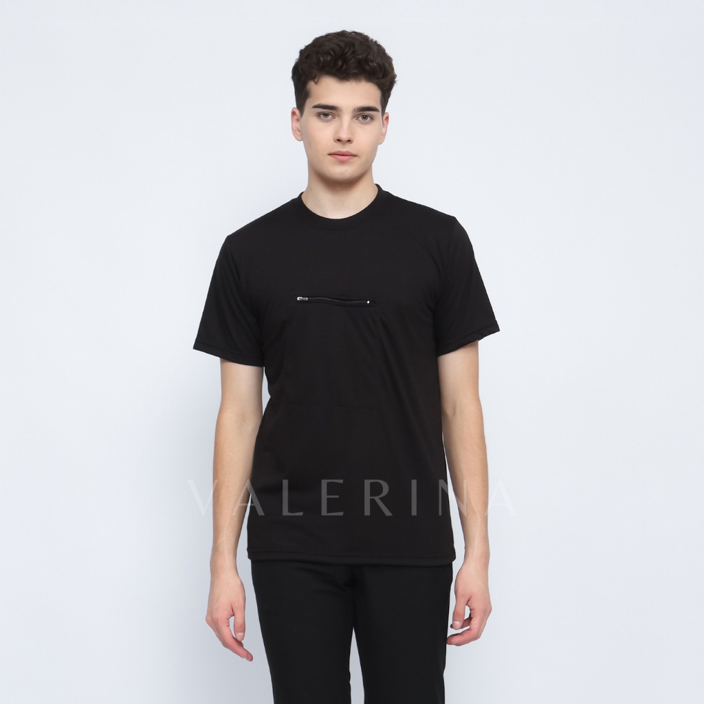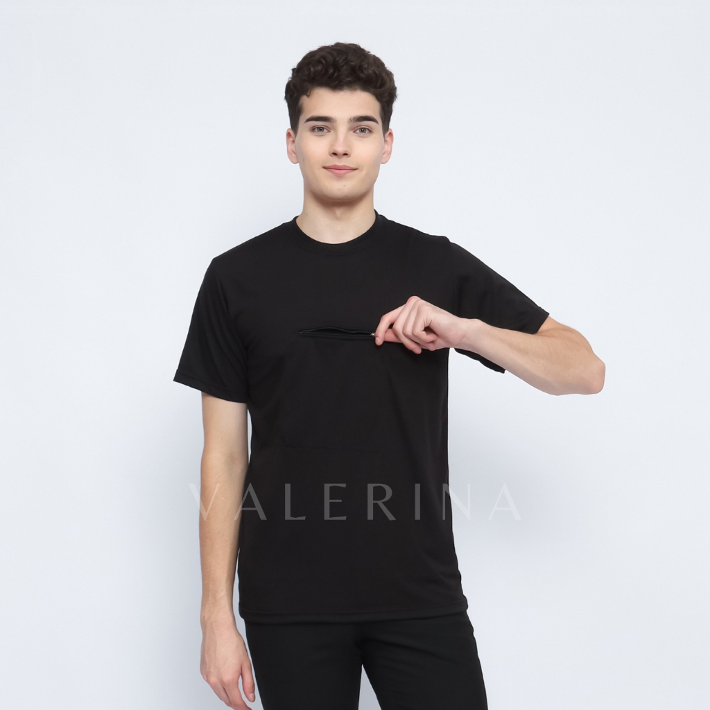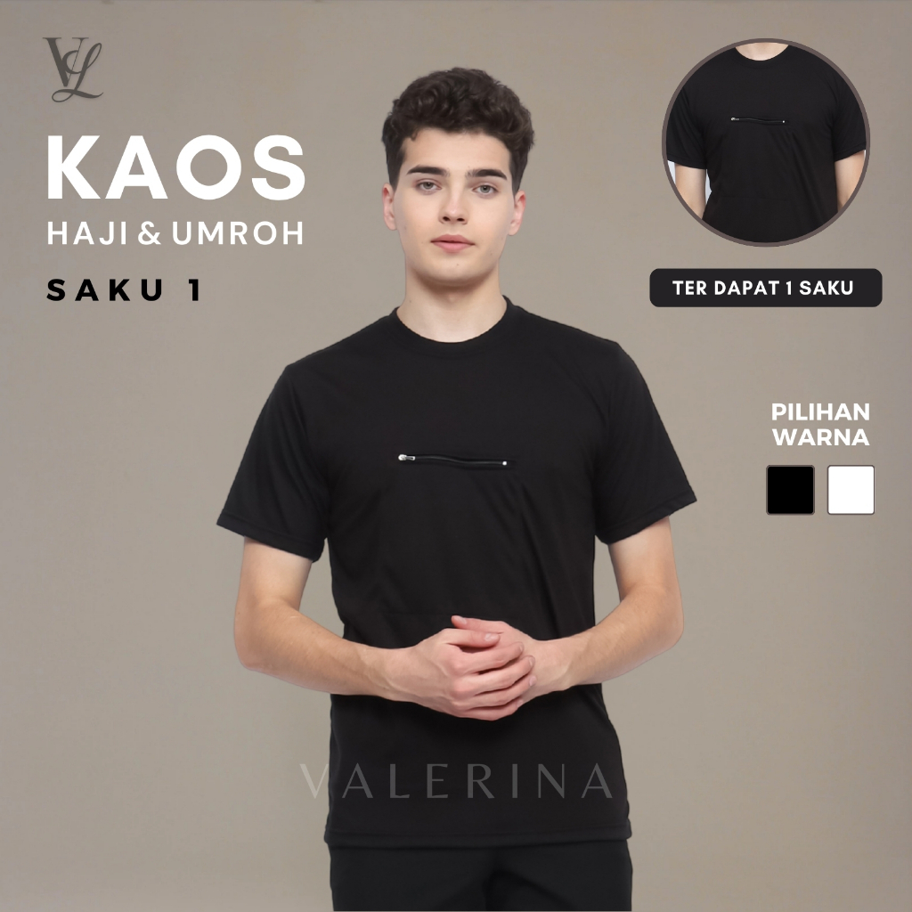 VALERINA - Kaos Haji Umroh Hitam Kantong depan Saku 1 Resleting Pria Dewasa Exlusive Bahan Poliester Ultra Soft Warna Hi
